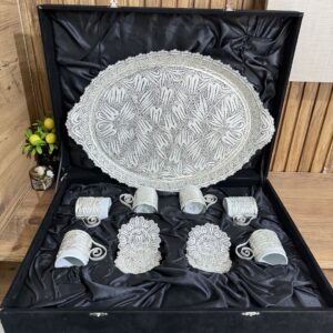 - Telkari İşlemeli Gümüş Kahve Fincan Tepsi Takımı modelimiz kişiye özel yapılır.
