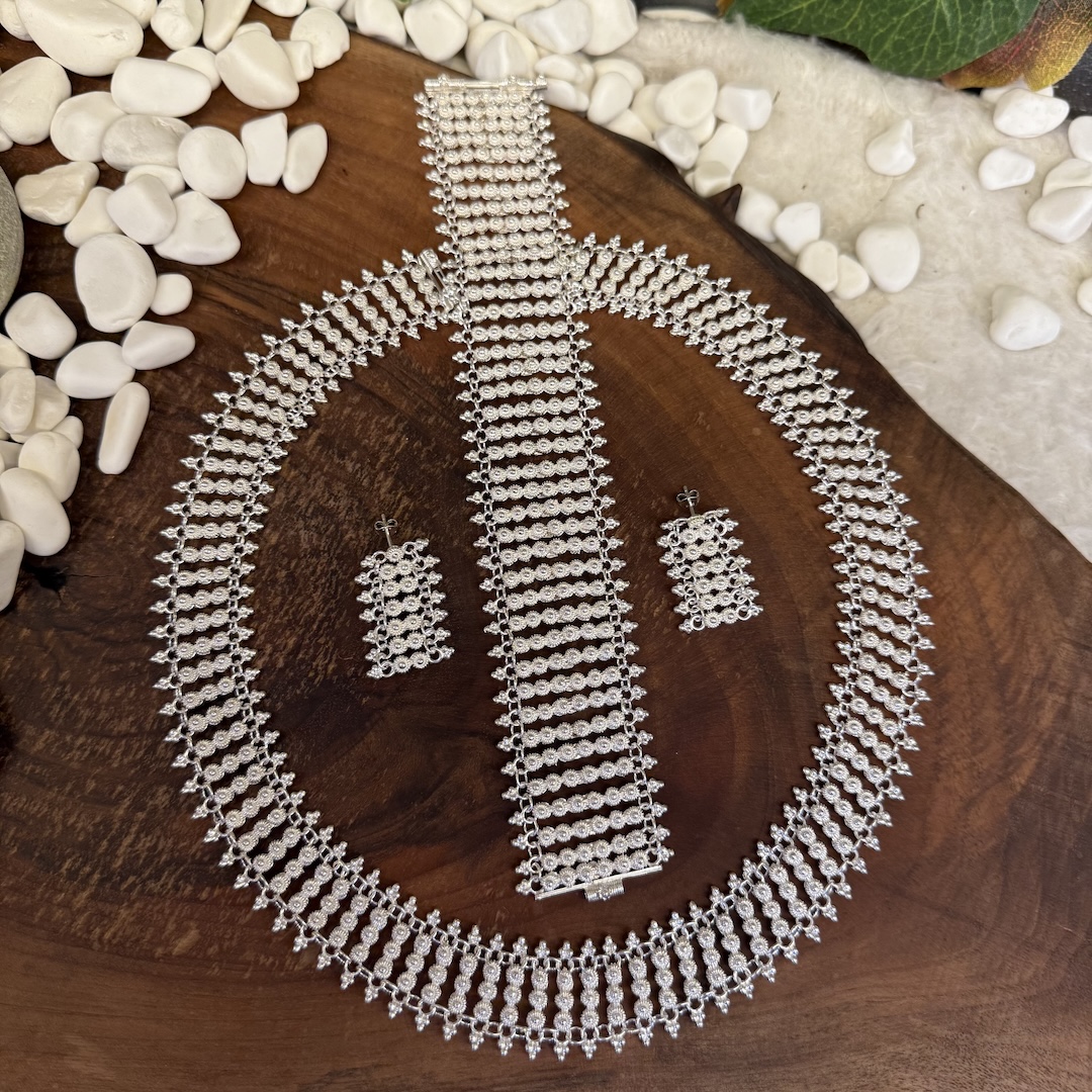 • Takı setimiz gerdanlık, bileklik ve küpeden oluşmaktadır.