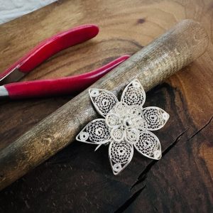 Artuklu Telkari, tarihi gümüş işleme sanatını, günümüz modern takı işlemeciliğiyle birleştirerek, tamamen müşterisine özel tasarımlar üretmektedir. Artuklu Telkari de, güvenli ve kolay alışveriş imkanı ile gümüş işleme ve altın kaplama gümüş çeşitleri bulunmaktadır. İncelediğiniz, Telkari İşlemeli Gümüş Şal Broş Modeli tamamen el işçiliği ile size özel üretilecektir.