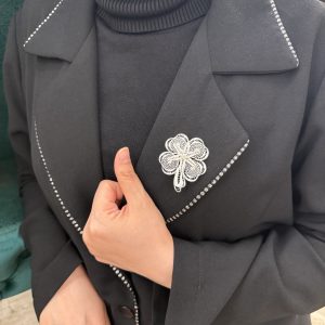 - Telkari İşlemeli Gümüş Yonca Yaprağı Broş Modeli modelimiz kişiye özel yapılır.