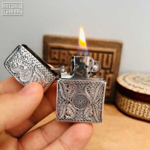 - Telkari İşlemeli Gümüş Zippo Çakmak modelimiz kişiye özel yapılır.