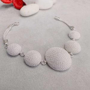 Artuklu Telkari, tarihi gümüş işleme sanatını, günümüz modern takı işlemeciliğiyle birleştirerek, tamamen müşterisine özel tasarımlar üretmektedir. Artuklu Telkari de, güvenli ve kolay alışveriş imkanı ile gümüş işleme ve altın kaplama gümüş çeşitleri bulunmaktadır. İncelediğiniz, Telkari Parmak İzi Gümüş Bayan Bileklik tamamen el işçiliği ile size özel üretilecektir.