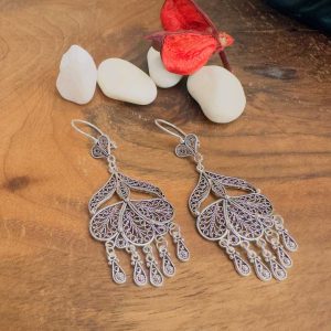Telkari Püsküllü Gümüş Bayan Küpesi