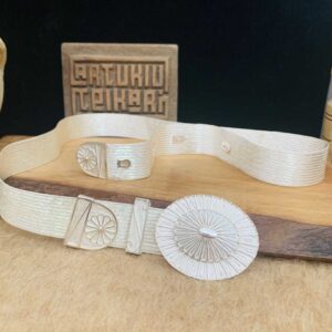 Artuklu Telkari, tarihi gümüş işleme sanatını, günümüz modern takı işlemeciliğiyle birleştirerek, tamamen müşterisine özel tasarımlar üretmektedir. Artuklu Telkari de, güvenli ve kolay alışveriş imkanı ile gümüş işleme ve altın kaplama gümüş çeşitleri bulunmaktadır. İncelediğiniz, Telkari Trabzon Hasırı Kemer tamamen el işçiliği ile size özel üretilecektir.