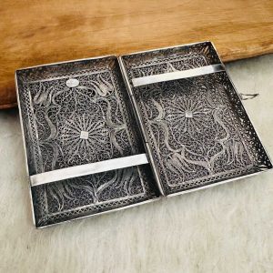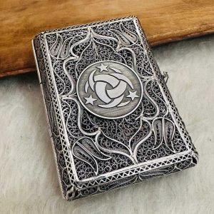 Artuklu Telkari, tarihi gümüş işleme sanatını, günümüz modern takı işlemeciliğiyle birleştirerek, tamamen müşterisine özel tasarımlar üretmektedir. Artuklu Telkari de, güvenli ve kolay alışveriş imkanı ile gümüş işleme ve altın kaplama gümüş çeşitleri bulunmaktadır. İncelediğiniz, Teşkilatı Mahsusa Logolu Sigara Tabakası tamamen el işçiliği ile size özel üretilecektir.