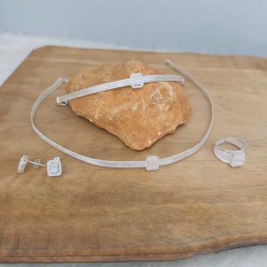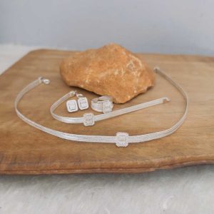 - Baget model setimiz 3 sıra bileklik, 3 sıra kolye, küpe ve yüzükten oluşmaktadır.