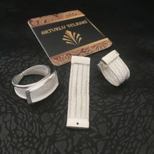 Artuklu Telkari, tarihi gümüş işleme sanatını, günümüz modern takı işlemeciliğiyle birleştirerek, tamamen müşterisine özel tasarımlar üretmektedir. Artuklu Telkari de, güvenli ve kolay alışveriş imkanı ile gümüş işleme ve altın kaplama gümüş çeşitleri bulunmaktadır. İncelediğiniz, Trabzon Hasırı Gümüş Küpe Yüzük tamamen el işçiliği ile size özel üretilecektir.