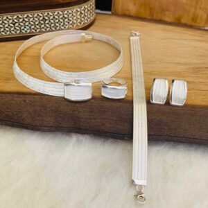 • 5 sıra bileklik, 5 sıra kolye, klasik küpe ve yüzükten oluşmaktadır.