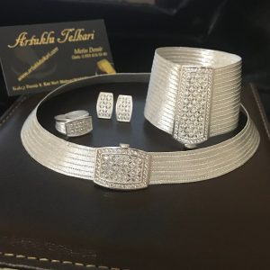 Artuklu Telkari, tarihi gümüş işleme sanatını, günümüz modern takı işlemeciliğiyle birleştirerek, tamamen müşterisine özel tasarımlar üretmektedir. Artuklu Telkari de, güvenli ve kolay alışveriş imkanı ile gümüş işleme ve altın kaplama gümüş çeşitleri bulunmaktadır. İncelediğiniz, Trabzon Hasırı Prenses Modeli Takı Seti tamamen el işçiliği ile size özel üretilecektir.