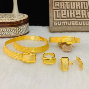 - 5 sıra bileklik, 5 sıra kolye, klasik küpe ve yüzükten oluşmaktadır..