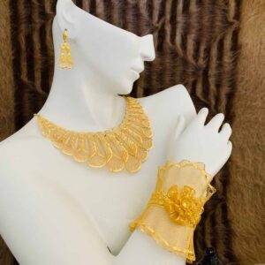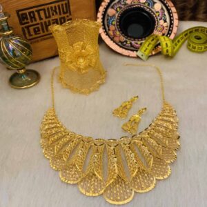 - Takı setimiz gerdanlık, bilezik ve küpeden oluşmaktadır.