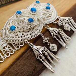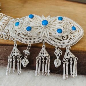 - Turkuaz Taş İşlemeli Fişekli Telkari Gümüş Kemer modelimiz kişiye özel yapılır.