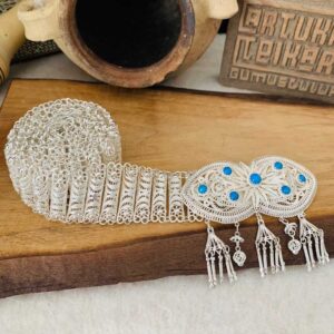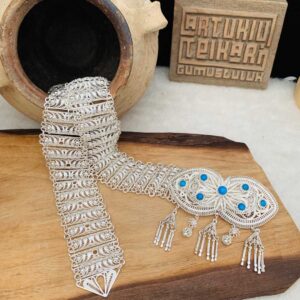 Artuklu Telkari, tarihi gümüş işleme sanatını, günümüz modern takı işlemeciliğiyle birleştirerek, tamamen müşterisine özel tasarımlar üretmektedir. Artuklu Telkari de, güvenli ve kolay alışveriş imkanı ile gümüş işleme ve altın kaplama gümüş çeşitleri bulunmaktadır. İncelediğiniz, Turkuaz Taş İşlemeli Fişekli Telkari Gümüş Kemer tamamen el işçiliği ile size özel üretilecektir.