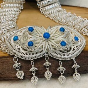 - Turkuaz Taş İşlemeli Telkari Gümüş Kemer modelimiz kişiye özel yapılır.