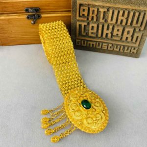 - Yeşil Taşlı Altın Kaplama Telkari Gümüş Kemer modelimiz kişiye özel yapılır.