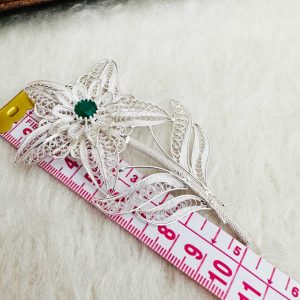 Artuklu Telkari, tarihi gümüş işleme sanatını, günümüz modern takı işlemeciliğiyle birleştirerek, tamamen müşterisine özel tasarımlar üretmektedir. Artuklu Telkari de, güvenli ve kolay alışveriş imkanı ile gümüş işleme ve altın kaplama gümüş çeşitleri bulunmaktadır. İncelediğiniz, Yeşil Taşlı Telkari Gümüş Broş tamamen el işçiliği ile size özel üretilecektir.