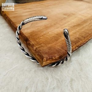 Artuklu Telkari, tarihi gümüş işleme sanatını, günümüz modern takı işlemeciliğiyle birleştirerek, tamamen müşterisine özel tasarımlar üretmektedir. Artuklu Telkari de, güvenli ve kolay alışveriş imkanı ile gümüş işleme ve altın kaplama gümüş çeşitleri bulunmaktadır. İncelediğiniz, Yılan Başlı Gümüş Erkek Bileziği tamamen el işçiliği ile size özel üretilecektir.