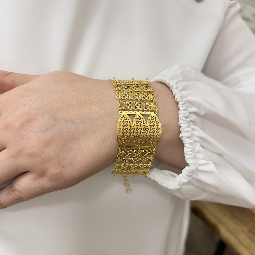 Altın Kaplama Çiçek Desenli Trabzon Bileklik