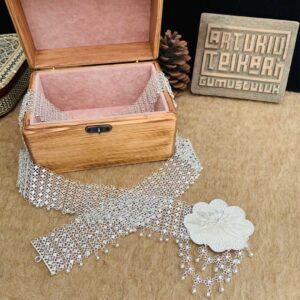 Artuklu Telkari, tarihi gümüş işleme sanatını, günümüz modern takı işlemeciliğiyle birleştirerek, tamamen müşterisine özel tasarımlar üretmektedir. Artuklu Telkari de, güvenli ve kolay alışveriş imkanı ile gümüş işleme ve altın kaplama gümüş çeşitleri bulunmaktadır. İncelediğiniz, Yıldızlı Telkari Gümüş Gelin Kemeri tamamen el işçiliği ile size özel üretilecektir.